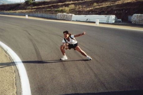 You know how you can play the "air guitar"? This is me doing an "air turn" in turn 2. I've yet to take my bike around Laguna, so this was the closest I could get to pretending I'm a WSB superstar. Damn, look at me countersteer that airbike! Too bad I still can't seem to keep my toe from hanging off the ghost peg; bad form follows me everywhere.