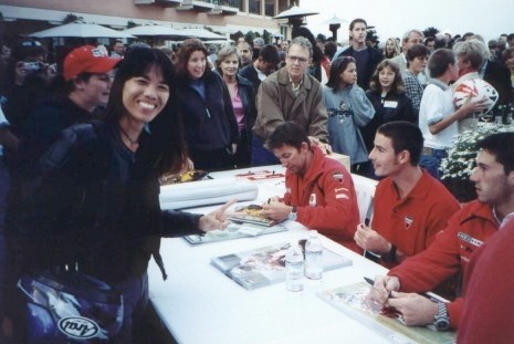 I went to the Ducati party to get Ben's autograph. Not until I was there did I realize I'd already had Ben sign about everything I own. My helmet's signed. My jacket's signed. I have signed posters. I even have a signed model of a Ducati 996. I opted to have Ben sign one of those posters in front of him. He did recognize me after I told him who I was and he seemed appreciative of my work. Such a nice boy.
