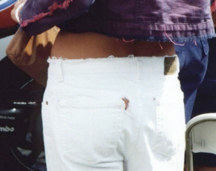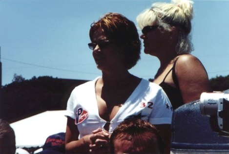 This is Ben's ex-girlfriend, Launi. She was at Laguna showing her support for her once-potential brother-in-law, Eric. I know, all you girls are going to want to bag on her 80's-style safety-pinned shirt, but if I had a tanned set like that, I think I'd have nothing more than a safety pin between them, too. Check out what Launi was staring at when I took this picture...