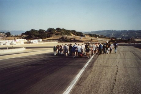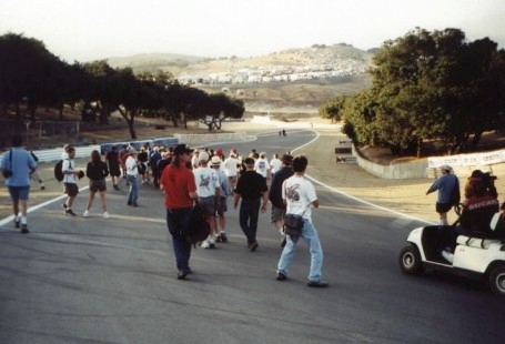 A gaggle of us Ducastistis went on a track walk lead by Doug Polen. We may very well be the first large, well-mannered group of bipeds to barrel into turn two. At the very least, I am pretty damn sure that red rolling luggage case (it's at the back of the pack) is the first of such "vehicles" to make this trip around the track.