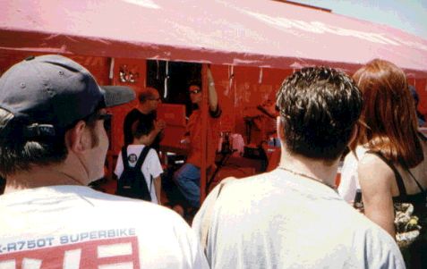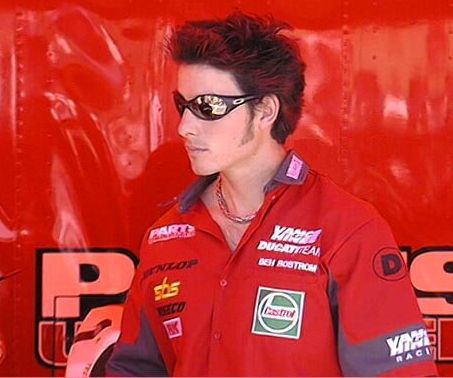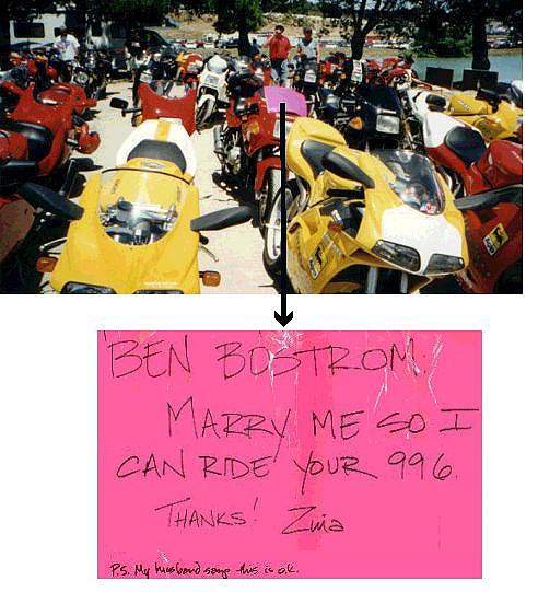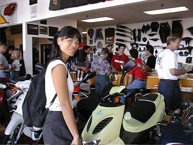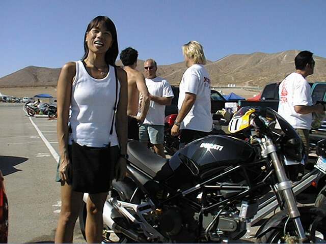 Here's Ben at GP Motorcycles in San Diego for an autograph session. I had him sign my helmet. I said to Ben, "Uh, hi, um, er, you blew my doors off yesterday at the track." He said, "Naaaw, I wouldn't do that!" Then I think I blushed about 20 shades of red and nearly passed out. If you think it's easy being 36 and suffering from a schoolgirl crush, think again. My bike will soon need to be retrofitted with a walker, and here I am ogling some Gen-X hottie. Shame on me.