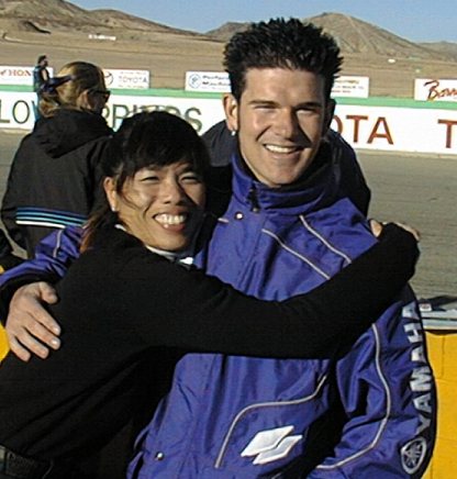 INCIDENT REPORT................................DATE:12/15/00 Setting: Fasttrack Riders monthly session at Willow Springs (Rosamond, California). Decision: Touch Anthony Gobert. Approach Query: "Hi Anthony. Can I have my picture taken with you?" Response: "Sure." Instructions: "Great. NOW PRETEND YOU'RE MY BOYFRIEND!" Action: I proceed to drape my body against his. Reaction: Uncertainty on Gobert's part, but he does concede to the fact that he will have to touch me (note how he's about to pull a muscle leaning away from me). Output: Pleasant photo is captured. Follow-Up Action: I show a preview of the picture to Anthony and tell him, "Look, we're in love...you just don't know it yet!" Follow-Up Reaction: Anthony chuckles and glances around awkwardly. Professional Stalker Knowledge: There are no security people at Willow Springs. Every racer who goes there is subject to sexual harrassment. |