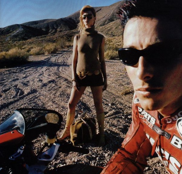 The above photos are from the January 2001 issue of Marie Claire. (Go behind-the-scenes on this photo shoot.) What is Marie Claire? A total chick magazine. This month's topics include "What makes a woman great in bed" and "Intuition, use it to get what you want." Thanks to Marie Claire, I am getting in touch with my feminine side. Resolution for the upcoming new year: Get rid of my moustache, wear my belt in expressive new ways, and learn how to make my man give me everything I want!