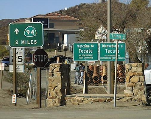 I think there's some confusion here. These signs are facing the U.S. side. Shouldn't "Welcome to Tecate" be facing Tecate? Oh details, details. The street name "Thing" is about as romantic as its environs. "Person" and "Place" must be right around the corner.