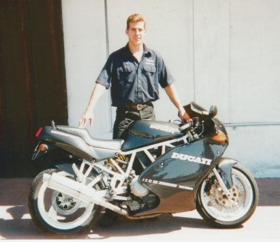 This is one of my favorite pictures of Chris. He looks really proud of his first Ducati, a 1992 Ducati 900SS. This picture was also taken during his Navy days and it was a rare moment in which he wasn't sporting a crewcut, which made him look too much like a hardass. With that military 'do, he looked like he beat his woman and kicked his dog when he wasn't counting out 100 pushups.