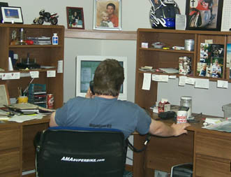 Born: Some time in the 60s in Appleton, Wisconsin. Favorite Snack: Donuts. Favorite Drink: Donuts, except for the occasional adult hankering for Baileys. Favorite Bike: 1982 Kawasaki KZ1000 S-1. Favorite Modern Bike: Any R1 with a full tank. Yellow 748s make me stand at attention. Bikes Owned: 1999 Honda XR100, 1986 Yamaha SRX600 (2), both disassembled and in boxes. 1983 KZ750L3, refuses to start, is now a semi-portable place to stack jackets and kid's snowsuits in the garage. Favorite Rider: Tom Kipp, who is also my best friend and godfather to my youngest son, Kipp (yes). Favorite Non-Family Rider: DuHamel or Mladin, depending on the day, simply because their will and desire to win oozes from them like blood from a civil war stomach wound. Racing is about winning, a lot of people don't get that. Why He's Better Than Most of Us: The sole perk of my job is that I can borrow any bike I feel like riding from the manufacturers. Distinctive Physical Trait: Skin on my hands is as soft as a baby's bottom, which, with my blue collar background makes me a traitor to a way of life. Nothing on my face needs to lanced. Butchered Statement From Bobby Kennedy's Eulogy That Best Describes AMASuperbike.com: "Some men see things as they are and wonder why. At AMASuperbike.com we see things as they are and wonder WHAT THE HELL WERE THEY THINKING?" |