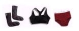Layer 1: These are the fundamentals. I've found that sport bras are better than standard bras because they don't come unfastened. (Guys: For those of you new to crossdressing, lace gets scratchy after a while so save the pretty stuff for the cabaret show.) As for the underroonies, you know what your mom says about wearing "a clean pair" in case of an accident. |