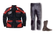 Layer 3: A standard cotton pullover shirt and cotton tights. The cotton pullover is less about retaining heat and more about protecting my body from the heat being put out by the vest. If you don't have enough between you and the vest, it feels like you're sitting way too close to a fireplace. The extra tights help keep the chill from the leathers from affecting my legs. |