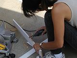 ![]() We used the circular saw to cut manageable grids into the floor so we could tear it up in chunk-size pieces. |
