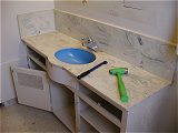 ![]() The piece around the bathtub required some template work and then a jigsaw to cut it into its weird shape. |