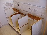 ![]() The cabinets took a while to tear apart. Nails everywhere courtesy of the sport carpenter who built them. |