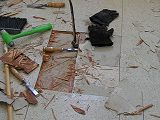 ![]() It was evident that there was water damage around the toilet so the floor had to come up. |