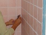 ![]() Regrouting was a HUGE pain in the ass. The dingy old grout was too hard to remove so I had to carefully lay new white grout on top. |