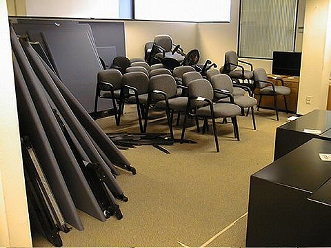 The worst of all tasks was dealing with selling off the remaining assets. People schlepped in and out of the building, poking into the recesses of the offices, pulling open file cabinets, snooping through drawers. While I was still seated at my desk, someone came up and stuck a sold sign to the corner of it. The meat was rotting (me) and the buzzards were circling (start-ups looking for cheap furniture...themselves likely to suffer our fate sometime in the near future). Although this process was intellectually easily to comprehend, it was hard not to let one's emotions step in and say, "Bastards! Come any closer to this desk and I'll disembowel you with a ballpoint pen!"
