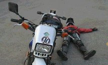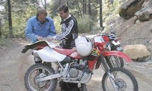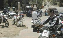 There is not enough metal on this planet to roll a can that would be big enough to hold all the whoop-ass that was opened up on us during our adventure. Would we do it again? Sure. But only after packing five times as much aspirin. Day's final destruction: broken brake lever, bent footpeg, disintegrated mirror, broken rear indicator, bent front indicators, misaligned handlebars, eight body slams for the girl, one ass-sitting for the boy. |