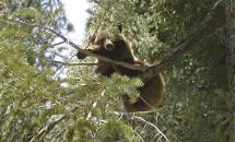 | Here's Cuddles the Bear up in the tree. The locals speculate that the bear had lost its mother, as bears this young are not normally separated from their mothers. I think they had called the animal control people to deal with the bear. In the meantime, I thought I would try to check the bear's underside for trendy piercings or tattoos. None were found. |