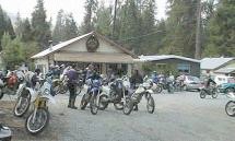 | Our second stop was at the Ponderosa. They were prepared for the crowd with some outdoor burger grilling action. It was also the second gas stop, which we took advantage of. It looked like most of the guys were in small groups or pairs. A few were riding solo, and as such had to eat their burgers alone while sitting in the flowerbox. |