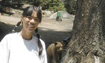 A young bear was hanging around behind the restaurant and I simply had to have my picture taken with it. I suppose this need to get close to wild or poisonous animals makes me a candidate for a Darwin award. I'm really beginning to understand why people do stupid things: Until you've been killed, it's hard to imagine being dead. I'm simply not computing that this teddy bear behind me could knock my block off. |