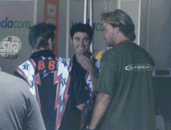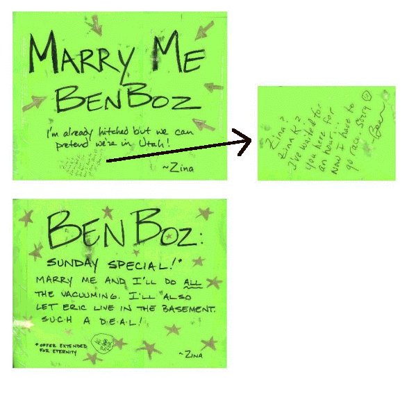 Ben's threads when he's chillin' with the boys. Check out Eric giggling. |