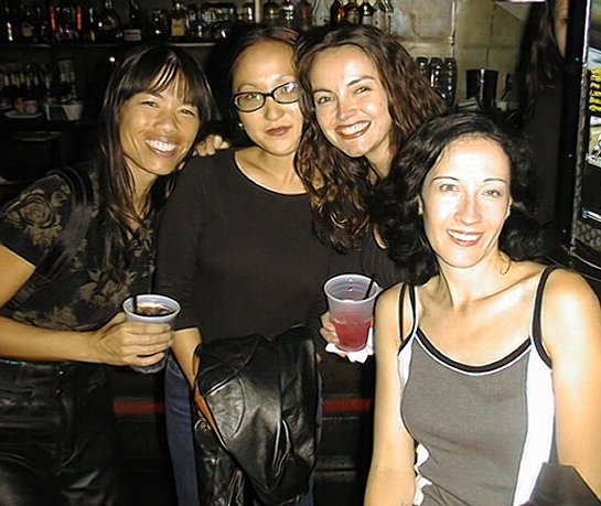 Me, Jane, Vanessa and Leslie: Call us Squad B4B, or "Bimbos for Bostrom." |